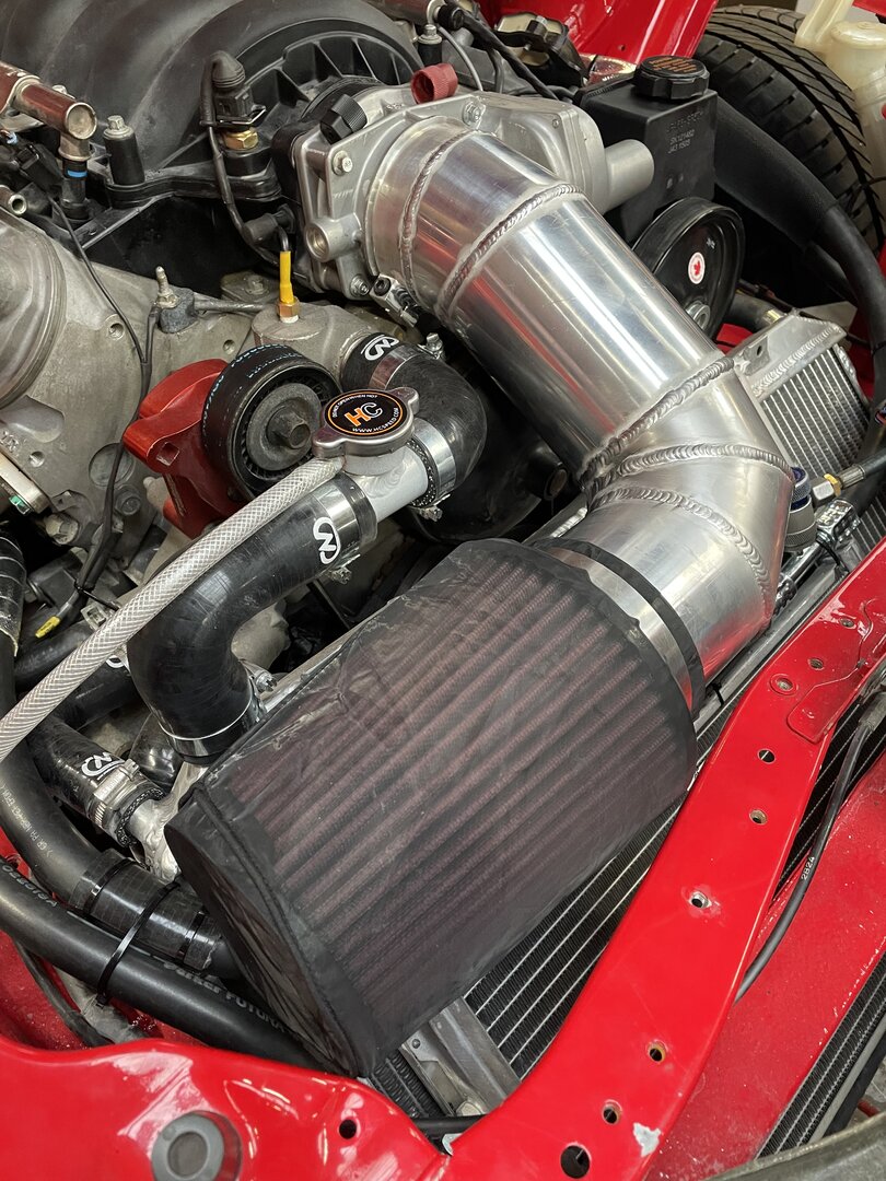 Last job on Saturday was making a start on the air intake, it's a tight fit under the bonnet so had to turn it down immediately out of the throttle body. I've bought a round K&N air filter so just need to turn the pipe at 90 Degrees to run along the top of the radiator.