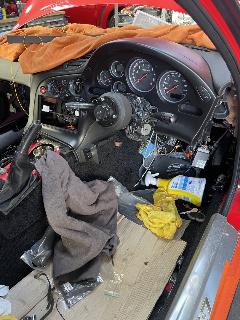Have spent a lot of time pluging in sensors on the engine, cooling & oil system for the Emerald ECU & the two SPA gauges. So ended up under the car getting covered in filler dust form the time the car spent at the paint shop routing wires & clipping them to parts that don't get hot or rotate.